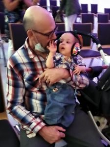Afte Emmy got up, it got a little more challenging. Thankfully three people came to offer help - Corona or not. The first one took Tammy, but Tammy does not know her, and she was crying, so she came back to me. Later Anna came, who they know well, and she had Emmy for the rest of the service. She told me that he was clapping along (so was Tammy), and that he raised his hand and smiled when they asked who'd been there before.