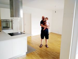 We got there first and had a few minutes to ourselves to look around before the people from the house management and the owner arrived. We had never met the owner before, but I had been in email contact with him, and he was excited to finally meet the babies. Unfortunately he doesn't really have much to say in what all they are going to charge us for what they think is not in perfect order. We already knew we'd be charged 800€ for the lost key, as they are going to change the lock. They took pictures of everything, tested everything, and made a list of everything, so they could charge for repairs and it seems also repainting the apartment. I had given them a deposit of 3000€ when I moved in 7 years ago, and would definitely like to get at least some of that money back. We'll know in a few weeks.