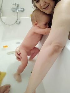 Dinner time was approaching, and I made their food. We all fed a baby each. Then I filled the bathtub up as it was Monday and time for a bath and to be weighed. The last few times the bathtub had been a problem. One time I put them in and turned the water on, andt hey freaked out. Then I put them in the dry bathtub, and especially Emmy freaked out. I hadn't put them in a bathtub with water and no running water in a while.