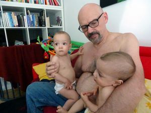 I never get much sleep, but last night my sleep got interrupted more than has been the case in a long time, and I felt it. I don't even remember all the details. At 8:50 I got up to make their food and feed them, then I lay back down in bed. I didn't get to sleep long before Randy dropped Sammy on my chest, because he was tired. Now it's very hard to make Sammy sleep on my chest. I put him into his bed nextdoors, and he fell asleep. 45 minutes I was awake again, when he woke up. I shouted to Randy to come get him, but he didn't, so I had to take him downstairs and handed him to Randy. Tammy and Emmy had fallen asleep right next to him, and when I came with Sammy, they woke up. It was 10:30 am. I guess we need to go back to 2 naps a day, if they can't wait till noon to sleep. In fact I just read about 11-month-old babies (which they are), and it said that they need two naps.
