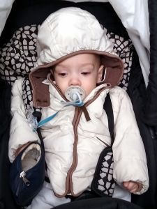 My alarm woke me at my regular time of 8:50, after having gone to bed at my typical time of after 2:30. I made their food, and we fed them at the dining room table upstairs. Then we dressed them, put their warm winter coats and boots on, and put them into the strollers. We left at 9:45 and it took us 45 minutes and 2 subways to get to the swimming pool.