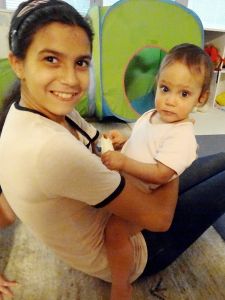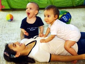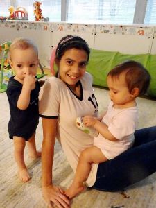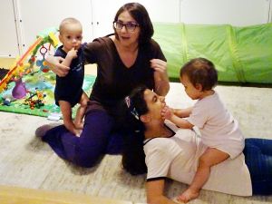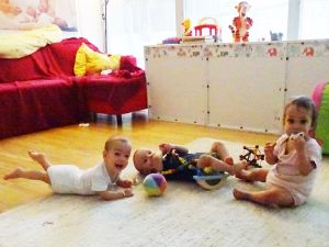 While I was still on the phone with him, our friend Anna arrived with her daughter at 3:30 pm. All three babies were actually sleeping, but the door bell woke up Emmy who started crying. Sammy was up to, and they came downstairs. Tammy followed not long after.