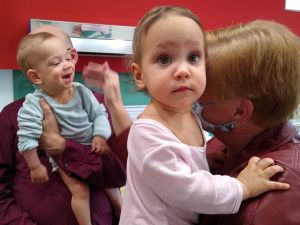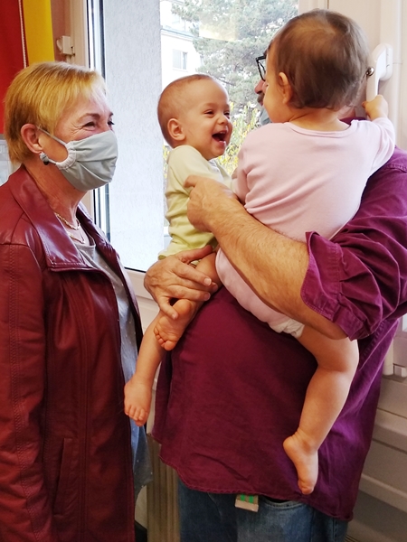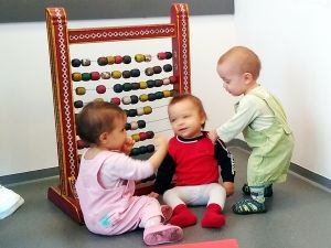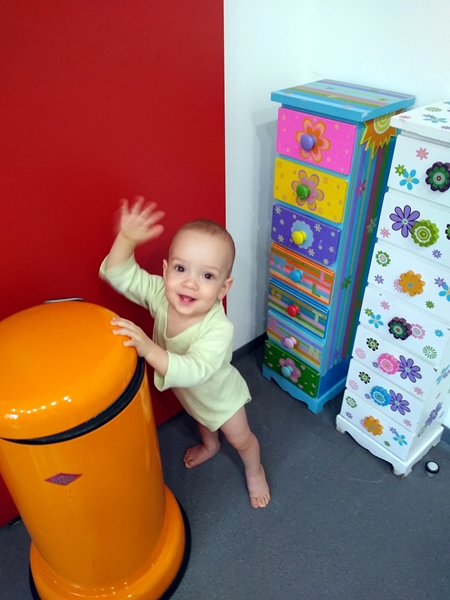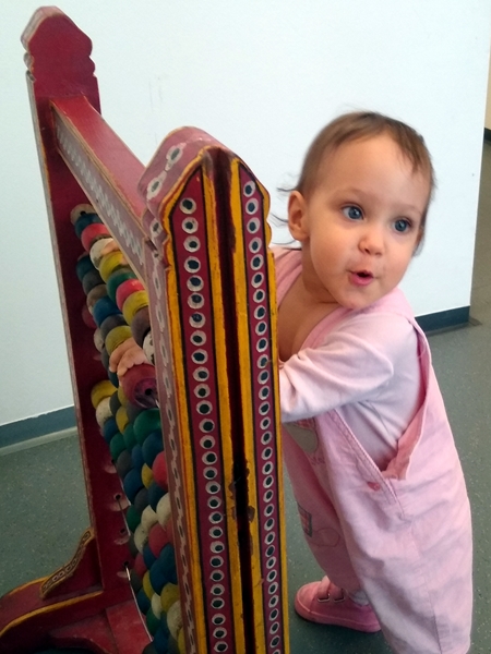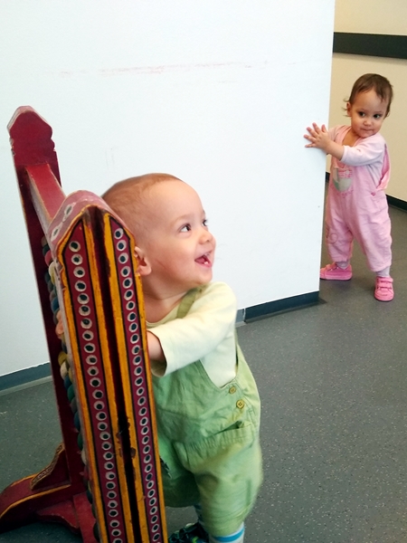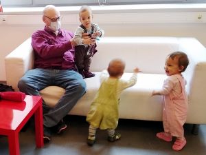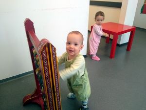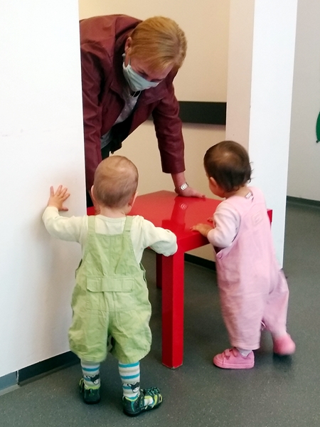 First we spent some time in the waiting room, where they had a new game, and some more babies came later too, and Tammy and Emmy immediately started touching this girl from both sides at the same time, but she didn't mind.