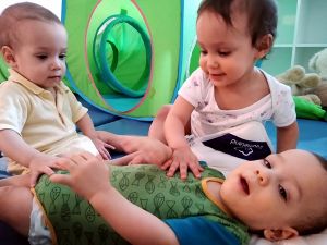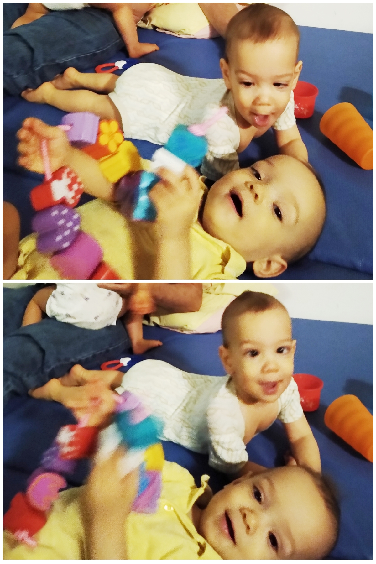 I'd like to keep dinner time at the later time of 5:30 pm, but sometimes they're just so tired and cranky, like tonight, that I go upstairs earlier to get their food ready. But we had fun from 4 until 4:45 pm, with all three of them.