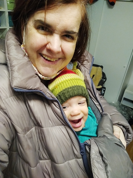 This morning when we got up, there was snow everywhere. The first snow of this winter, and it will probably already be gone tomorrow, because of rising temperatures. On the way to the post office Sammy got to touch snow for the very first time. Unfortunately I could not see his face to see his reaction. From the post office we went to the pharmacy, and then back home. Even though he only weighs 7.5 kilos, I could really feel it after a while, with my back starting to hurt. In any case, we both had fun. When he was getting a little cranky, I started hopping a little, and that made him laugh. What a sight that must have been, me hopping down the sidewalk!