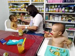 At 12:25 Sonja and Randy fed them their lunch meal, and then they went back downstairs. Once a week Randy cooks omelets, and today was the day. He made me one and brought it to me in the bedroom. While eating, I could hear Sammy crying hard. He often needs one of us around to not cry. I ate as fast as I can, and then went downstairs to hold my Sammy baby. All three were pretty tired, and so they went to bed at 2:15 for their afternoon nap, which is their regular bed time. This time it took Tammy 25 minutes to fall asleep, while the boys go to sleep fast, and she only slept 35 minutes. Right after she fell asleep, Sammy already woke up, half an hour after lying down, and his crying woke up his brother. The boys often wake each other up, and during the night usually drink at the same time because of that. So they got up at 2:45, and Randy and Sonja fed them their afternoon meal. When Tammy woke up at 3:15, Sammy was just finishing his meal, and it was her turn to eat. Then she went downstairs to join her brothers.