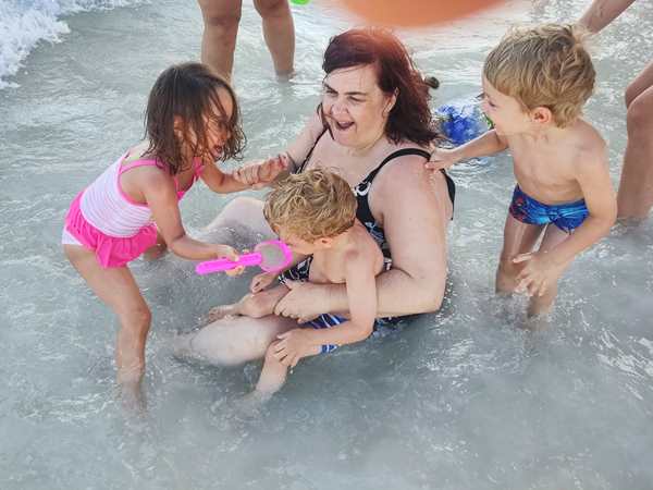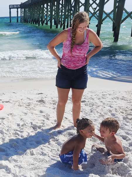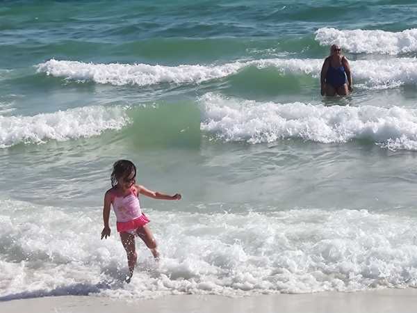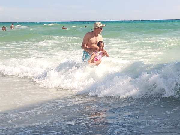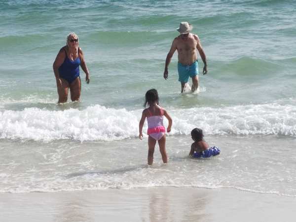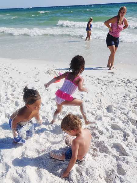 Tammy and Emmy were running around, playing in the sand, and also enjoying the water. We were constantly watching them like hawks because the water seemed so dangerous. Randy then got them one at the time and let them jump over waves, which they really enjoyed. Both of them also found shells and corrals that they were really excited about and that they showed me.