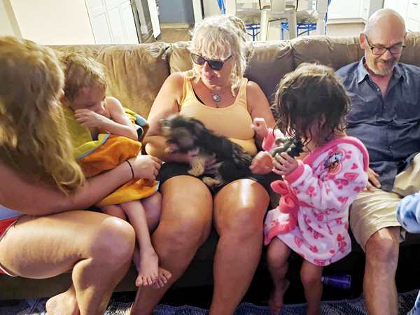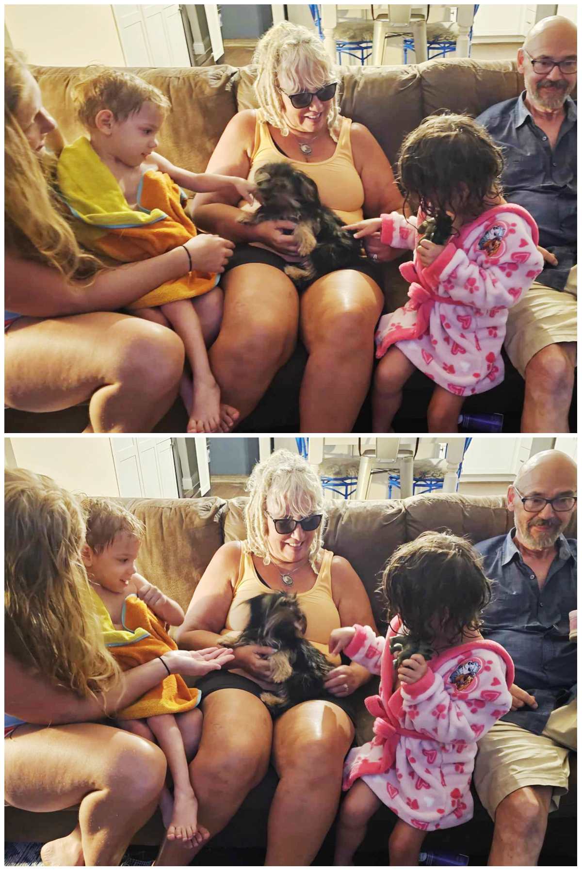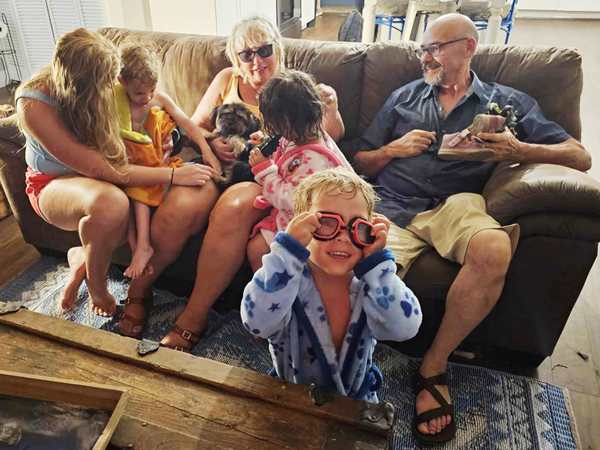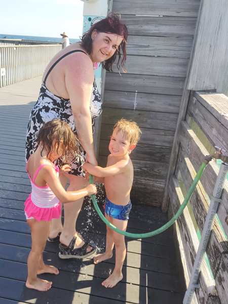 Because of the sand on us all, our friend had invited us to shower off in her bathroom. We happily accepted that offer. Tammy had another one of her fits, when a whole lot of sand ended up on the bottom of the bathtub, but thankfully it didn't last that long. And Emmy is really scared of dogs and only went inside house after they had locked them into a room. I was surprised to see him next to the little dog after coming out of the bathroom. Then we said good-night, walked back to the trailer, and finished getting them ready for bed. It was pretty late today, a good bit after 9 pm. I stayed with them and sang to them, then walked away before they were all asleep, but they were all okay with that.