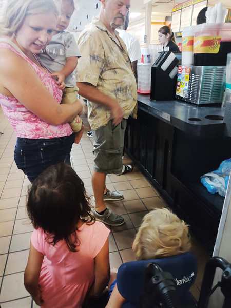 After we got out, we went back to the trailer, and as they were all so hungry, we finished the spaghetti leftovers from last night. Then they had a little play time before I put them to bed at 1 pm. At 2:15 pm my friend called me, as we had afternoon plans. All five of us were still sleeping at that point, but it was time for us to get up. Tammy sleeps really well, and she had one of her fits after I woke her up. It's always over something little. She wouldn't quit, even as we put her into her car seat. She then took her tablet and calmed down. As we had a nearly 1-hour ride ahead of us, they were all on their devices to make the time pass.