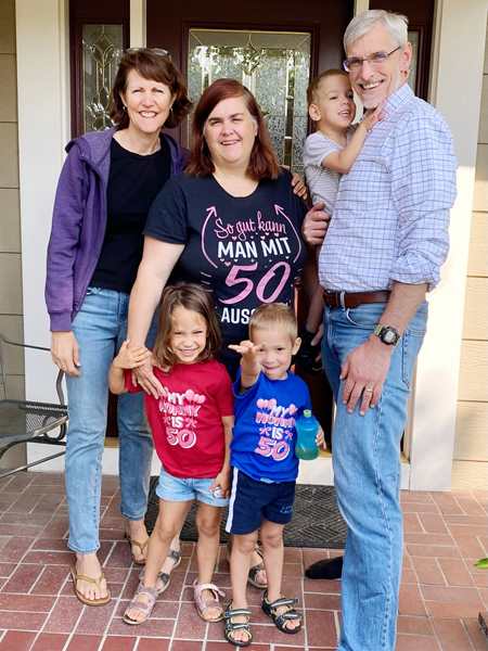 Day 1457. Tammy had somewhat of a rough night because of her stuffy nose and cough and woke up crying quite a few times. Everyone was up around 7 am this morning, and Randy took them downstairs for breakfast, while I started packing everything. I had a student at 8:30 and sat down to teach, while everyone else was downstairs. It then turned out that our lesson was supposed to be at 8 am; it was my mistake, and she did not want to start it as late as it was. So I went downstairs to also eat something for breakfast. We finished packing everything up and said good-bye to our friends. Before we left, we took some pictures together.