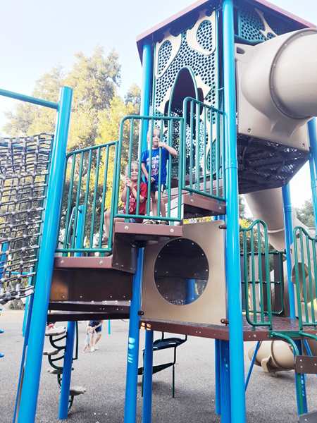 The kids really enjoyed the playground, and enjoyed the double swings. There was a big seat on one end, and a simple, normal seat on the other. I sat on that seat and swung the kids sitting on the other really high. They also did a lot of climbing on all the equipment there.