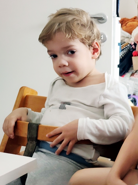 It was already after 10 am, so time was short. Still, instead of sitting down by the computer, I started changing all the sheets of all the beds, which took quite some time. Then I finally sat down at the computer. At about 11:30 I went to the kitchen to cook. Soon Randy and the children came upstairs. As there were no videos today, they asked to see pictures of themselves, when they were small, and so I put on videos of them from their first and second time in Mali. They were fascinated and watching with interest. Sammy wanted to see them too, so I put him into the kid's chair by the computer.