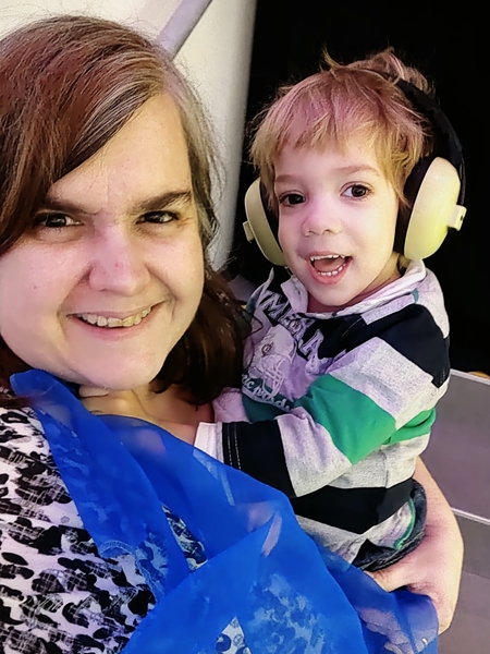 Sammy was calling out for Anna, as usual. She'd been gone for a few weeks, so he hadn't seen her in a while, but today she was there. He was so very excited to see her and really clung to her, hugging her tight. She showed us that he was hanging on her neck without her holding him. He did not want to leave her, but it was time to go. The service was still in full swing showing no sign of ending, and so we put their coats on to go home and left, hoping to catch the 7:30 train.