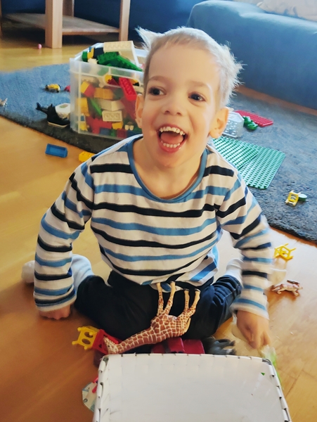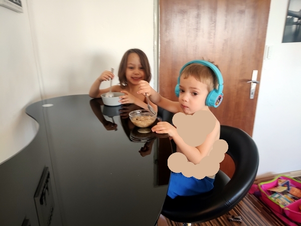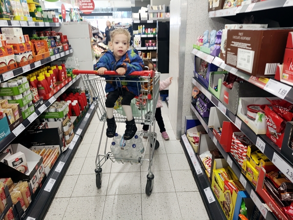 Day 1298. It was 5:30, when Emmy asked to listen to stories on his headset. When I saw what time it was, I asked him to come back to bed and sleep. He started having a fit and crying really loud. Thankfully he did not wake anybody else up and finally lay down next to me and fell back asleep. By 7 am he was up for good and soon he had woken up his siblings as well. Eventually we all got up. Randy made his oatmeal and sat down with Sammy at the tiny table in the kitchen, while Tammy and Emmy sat on the bar stools in our bedroom to eat. Then I cleaned them up and dressed them, and we all left the apartment to go to the grocery store around the corner.