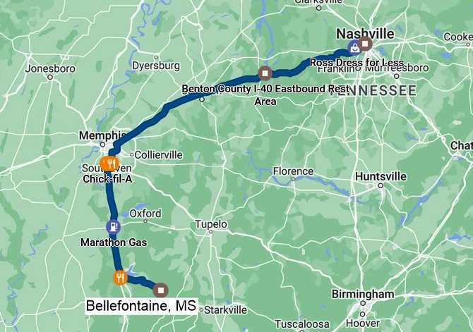 We left just before 10:30 am to drive north. Randy wanted to take the route through Memphis, and the south of Memphis was the right place to eat lunch at Chick-Fil-A. When we got there at 12:50, the playground was closed. That was really annoying. A lady there told us that there was another one not far that had a playground, so we got back into the car and drove there. And yes, in fact, their playground was open, much to the kids' delight. I was feeling very miserable. I ordered the food, while they were playing, then we sat down to eat, before they continued playing. We stayed 90 minutes and left at 2:40 pm.
