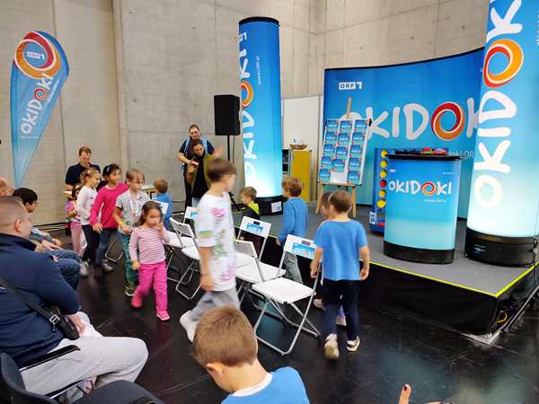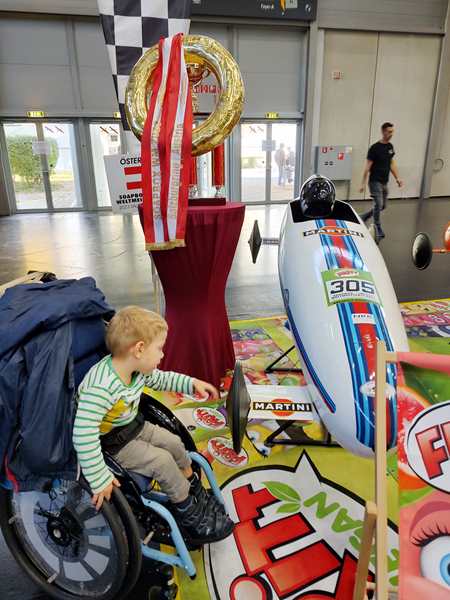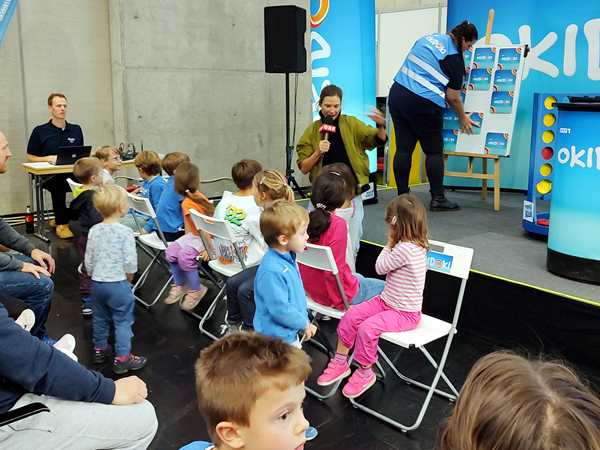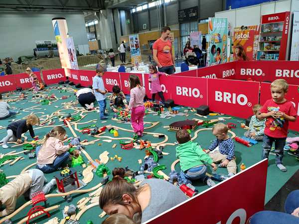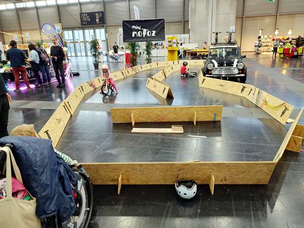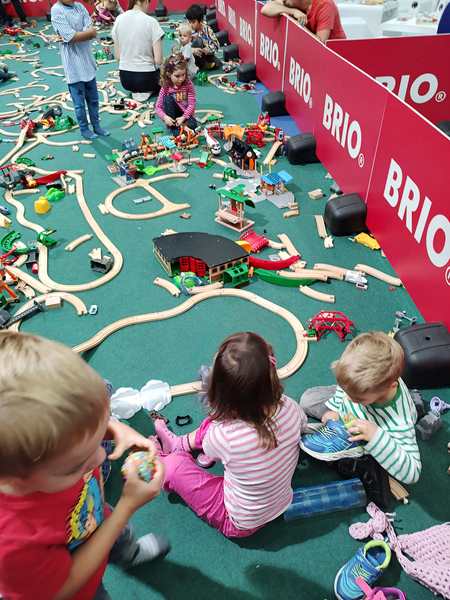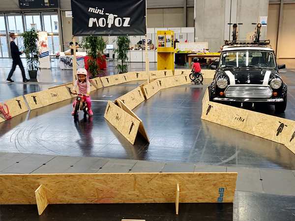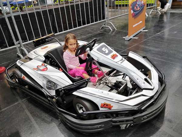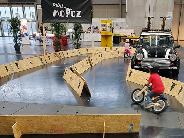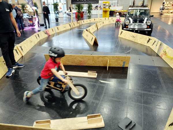 There was another hall right next to it with different stuff, and even though we wanted to leave, we walked through it quickly. There were all kinds of creative things going on, but as it was getting late, all the kid workshops were over. The only thing they did there was to get on bikes without pedals and go around a race track a few times. Then we left for good. It was 5:30 pm, so we had stayed for nearly 3 hours.
