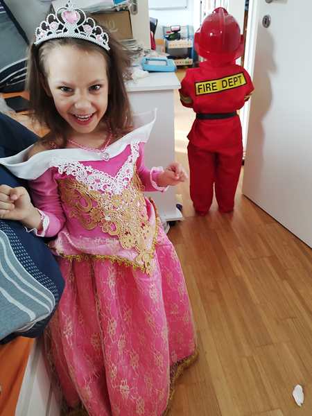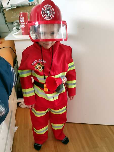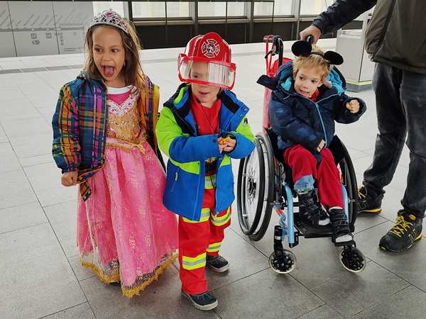 After lunch it was already time for the kids to put their costumes on. It was the first of four events today, where they could wear them. And they were really excited. Tammy is a princess, Emmy a firefighter, and Sammy Micky Mouse. Once we were all done, we left the house just after 1:30 pm.