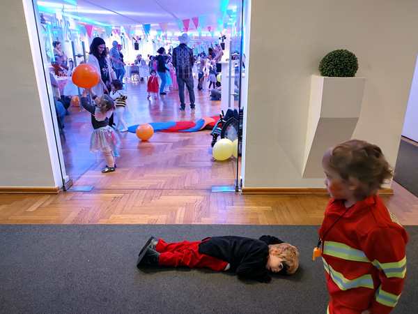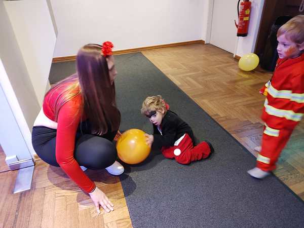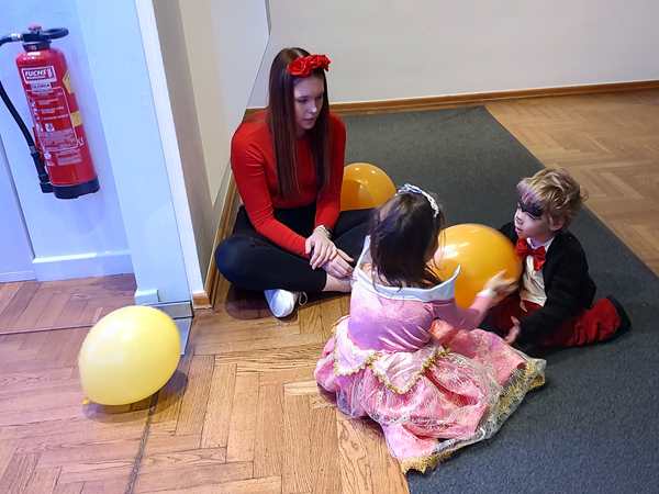Then the program continued with more songs/dances. Our kids preferred playing with the balloons. Sammy was cranky, whenever he was with Daddy, as he wanted to be with me, and so I was playing with him, making him laugh and have fun. We ended up right outside the dance hall and had fun there, together with Emmy who had joined us. Tammy then came as well, and then one of the teachers sat down with the kids. We didn't know her from our time there, but she showed real interest in Sammy. She was playing with him and talking to him until the end at 5 pm. Then we went to the locker room to put our shoes and coats back on and left to go home.