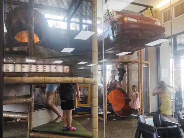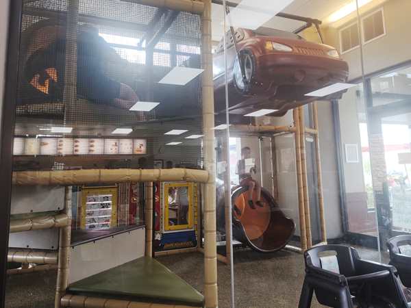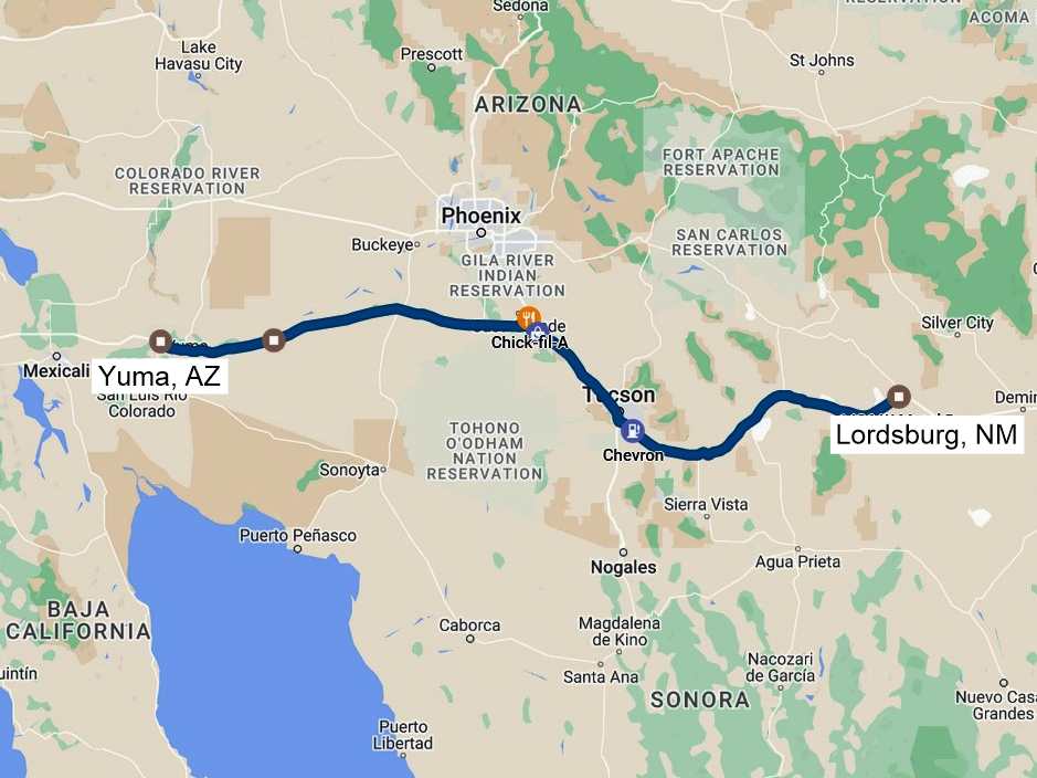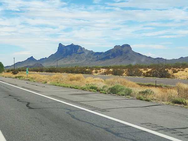 At 1:15 pm we stopped at a Chick-Fil-A in Casa Grande, south of Phoenix. The kids went straight into the playground, while I ordered the food and then sat down by our table to wait for it. Once it had come, Randy and the kids also sat down, but they were eager to get back to the playground and ate only the bare minimum. At 3 pm we continued on our way; we still had 3 hours of driving ahead of us. Normally I take the tablets away and have them sleep after lunch, but we were crossing into the next time zone, and I figured I had a better chance to get them to sleep an hour earlier than usual at night without a nap. And so I allowed them to continue using their tablets. Even Sammy never fell asleep, even though he looked tired, and he got rather cranky because of it.