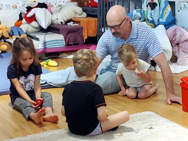 After I was done teaching, I went downstairs to where Anna was playing with the kids. It was great to have some time to talk to her. Sammy was really enjoying the time he got with her. Of course, once I was there, Sammy wanted me to swing him as Daddy never does, and I ended up doing just that.