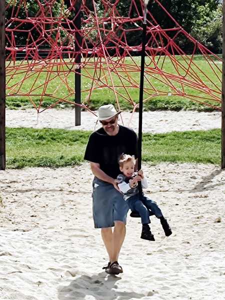 Randy joined us, and then the kids wanted to go use the zipline. All three used it and had lots of fun. I was impressed with Sammy who was able to hold on to it all by himself. He loved it so much that he cried, when we walked away. It was time to go home again.