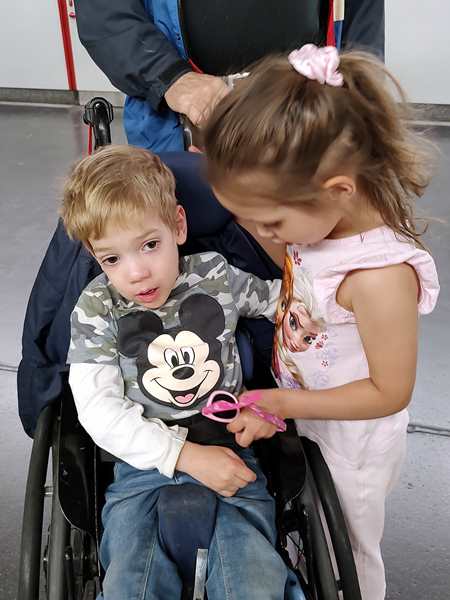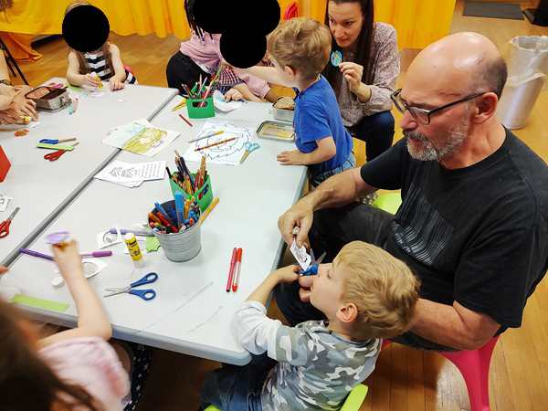It was close to 6:30, when Randy wrote me that everyone was tired and that they were pretty much done, so we could go home. I left the sanctuary and went to them. I found them finishing their crafts. They put their shoes on, and we walked back to the sanctuary. Sammy had been asking for Anna, so we went inside the sanctuary to find her. She then came outside with us and stayed with us for a few minutes. Sammy was so very happy and enjoyed being with her. The other two, especially Emmy, also played with her. Then we said our good-byes and made our way to the subway. Not long after 7:30 pm we were back home.