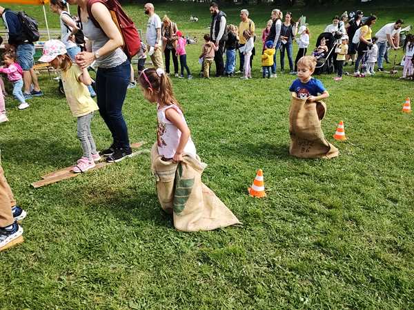 Randy and Sammy were always close to us, but Sammy couldn't/didn't do any of the stuff. We went to the next station, which was a race. There was quite a long line, but it moved quickly. The kids did stone-paper-scissors to decide who'd run first, and Emmy won. Tammy was very upset about that and started crying. When we got to the front of the line, Emmy started his run, and he did great. Then it was Tammy's turn and she was still crying and didn't want to run. She then said he'd run together with me, so off we went running. Emmy then joined us as well. Then Tammy fell and she was again crying. We continued running to the end, but obviously Emmy had won. It was not like her to act that way, and I had no clue why she was like that. Normally she would have just done the run and competed with her brother. I had said that the winner gets a lollipop and so she cried yet again, as she also wanted a lollipop.