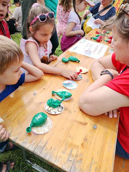 At the next station they had filled 6 balloons with different stuff. The kids had to feel what was inside and decide on what it was. Tammy went first and got it all right. Emmy went next and did not.