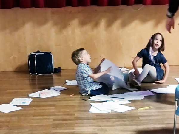 We sat down in our typical area. All three kids went straight to the front to do some drawing and then brought me their drawings to give them to me as a gift. Sammy was so proud for what he had done for me. Emmy also briefly sat down next to me, as did Tammy. Tammy actually did some dancing with two other kids at some point. Sammy was there too and kept asking, when the kids' program was starting. At 5:30 pm they all left to go there, while I stayed in the sanctuary.