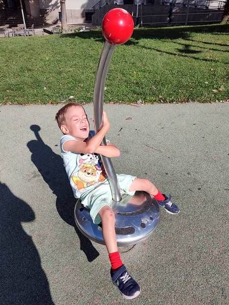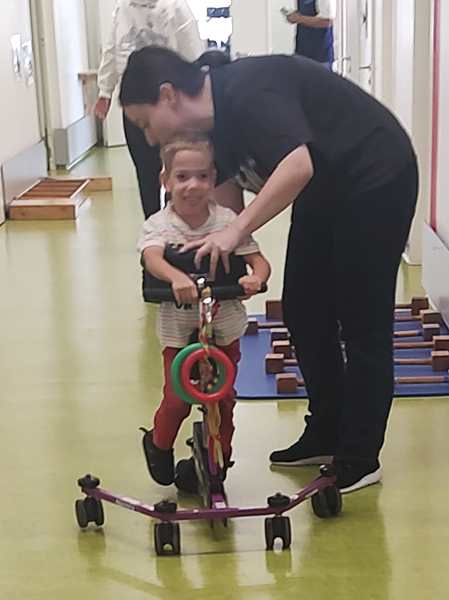 Day 1853. Yesterday I taught in the morning, then I made sure we both got something to eat before leaving the house. I left just after noon to go pick up Sammy from kindergarten. When I got there, the main teacher told me he was off walking around the kindergarten. Someone left to let him and the teacher with him know that I had arrived, and soon I saw him walking towards me with his walker. He was beaming from ear to ear, when he saw me, and I filmed Sammy walking so well. It's a shame that the walker we have at home doesn't work for Sammy, as this one sure works well.