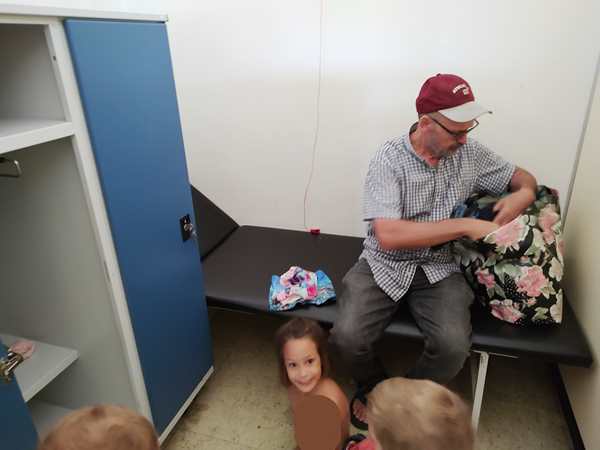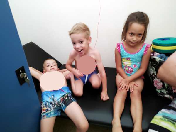 We crossed the street and walked to the swimming pool. Two years ago the kids had had their class there in the small, hot pool in the sauna. Now that they are big kids, it was gonna be in the main pool. It was their first class after the summer, and the first class with a new teacher.