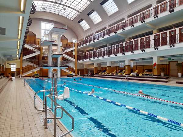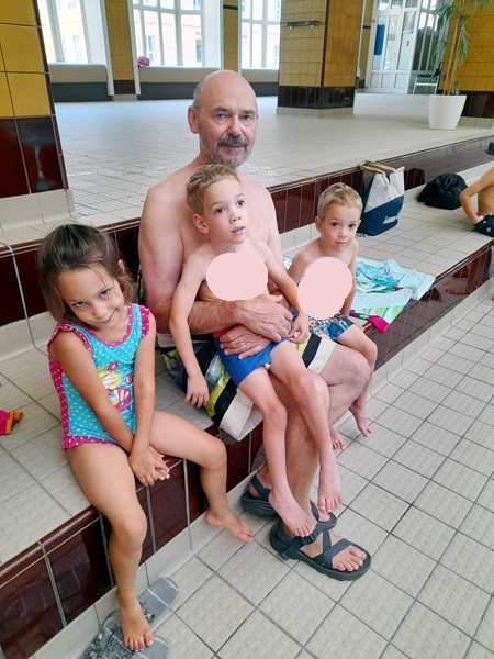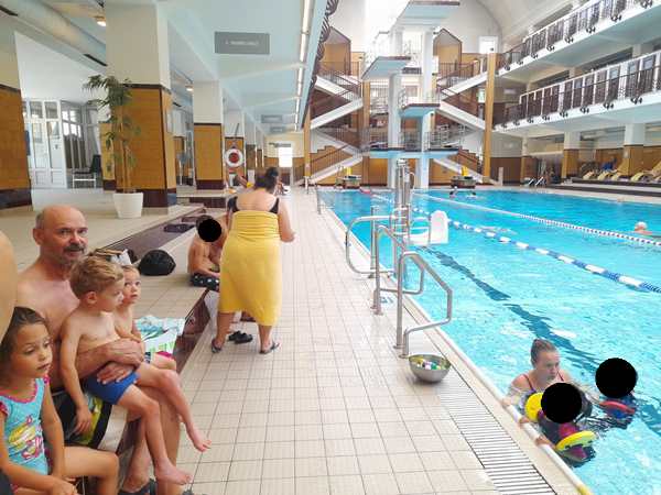 It was a huge, old-fashioned hall with only one but very big pool. There was also a small kid-pool at the end of it. We started walking in the direction of where we saw a bunch of kids and swim tools lying around. A lady immediately approached us and asked us not to take the kids to the kid-pool before the class because the water was so much warmer in there. We still had 15 minutes until their class was to start. She gave me a sheet, where I had to write their names down and sign. She turned out to be the founder and director of the swim school. After the class we talked a little before we left.