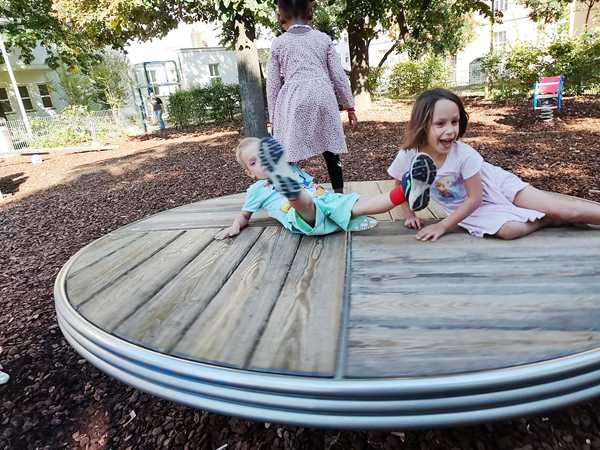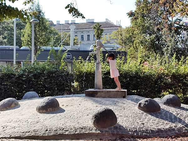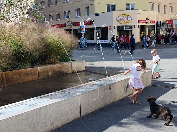 Walking down the road to the subway, there was water coming out of a wall that they immediately were attracted to and enjoyed playing with briefly. Then we continued on to the subway and took two subways to get home.