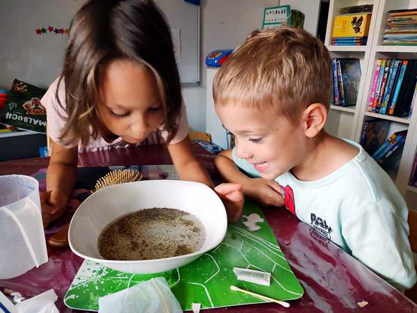 We opened the box and pulled out the three bags with an experiment each. They were water experiments. Each bag contained detailed instructions with pictures, some items needed, and a list of what was needed that we have at home. I have to say, I was very impressed and wholeheartedly recommend this company that wants to make science appealing to kids. The kids helped me and loved each one of the experiments. There'll be more boxes coming in the mail.