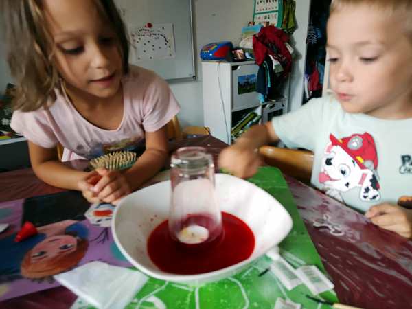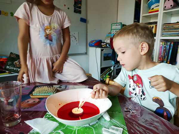 It was exactly 4 pm by the time we were back home. It's gonna be a challenge in the future to go to the 5 pm service on Saturday. I was really tired and just wanted to get some rest like Randy who sat down in a chair and rested. But the kids were adamant that they wanted to do the experiments that had come in the mail. I felt up to it, so I gave in.