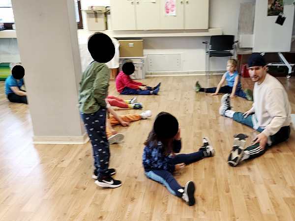 We took the subway and then the tram and got to the dance school early. Some kids were already there. The parents were sitting in the locker room, while the kids were doing their class. From time to time I'd go inside to see what they were doing and to take a few pictures. I also took two videos of Emmy dancing. He was doing a great job.