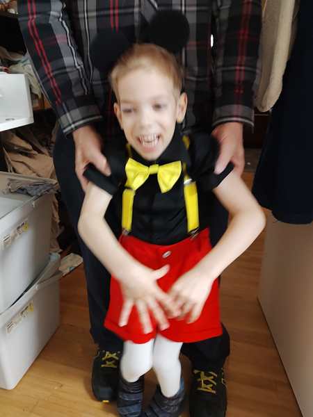 We had tickets for a carnival party - the last one - that we needed to leave for at 1 pm. It was very clear that Emmy was not up for it, so he and I were going to stay home. Sammy was so very excited to put his new Mickey costume on for the first time. I helped with him, and also helped Tammy get ready. I did her hair and her face, then I did Sammy's face. He looked so good in his new costume!