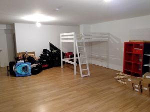 After everyone had eaten, Randy left once again to go to the apartment and work, while I stayed home alone with the babies. He stayed there for 4 hours and got our bed put together, as well as one of the 2 guestbeds. Our bedroom is small, and the bed and wardrobe barely fit in there, as there are doors on 3 out of 4 walls.