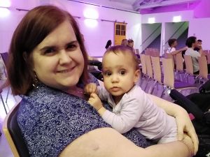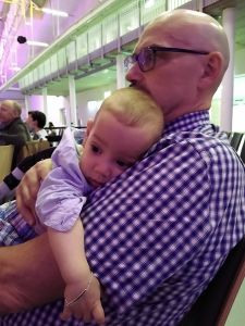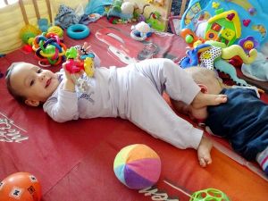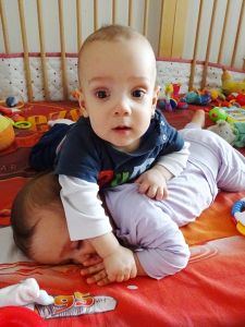 It was already 8 pm when we got home, which is a time when they're usually asleep. Sammy had had a lot of milk, but we didn't dare exclude him from the meal, like we had done once and he had complained. So we fed the boys, and I put them to bed. Then I decided to wake up the girl or she'd just keep sleeping in the stroller. At first she ate in her sleep, and once she woke up a little, she was cranky and wanted no more. She was unhappy when I changed her too, but thankfully fell asleep in bed fast.