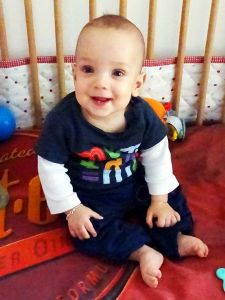 And today he actually hit a milestone; sometimes they are also more restless during times of growth spurts. I looked and there he was sitting in bed without holding on to anything! I took a picture, and then started a video that I have already uploaded.