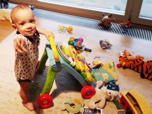 After an hour - it was 3:30 pm - I heard Tammy cry and knew she had to be tired by then. It was getting late, and so I got up and took Emmy down, waking him up, and lay down with Tammy. She fell asleep right away, and after half an hour I got up again with her, as she would otherwise sleep too long and not sleep at night.