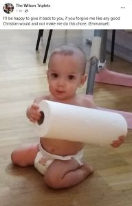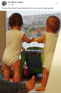 This morning I was in the same dilemma as usual for nap time. I take one baby and the other or others cry and want to also lie down with me. I switched babies a few times, and in the end, Sammy slept on me for a short time, but the other two never slept, as far as I'm aware of. I think it's time to go to one nap a day, instead of two.