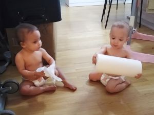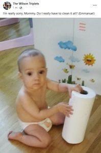 He actually got a hold of the paper towels and I have some priceless pictures and captions. Once Tammy joined him, she also ripped some towels off to clean the house. Emmy wasn't so sure any more whether he really wanted to clean and rather preferred to return the towels to me.