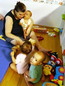 As they were getting more and more cranky, we finally decided to feed them a few minutes early. Then we put them all to bed. Sammy slept, and Tammy was so exhausted, she fell asleep really quickly. Emmy was awake for a while, though tired, and I asked Randy to rock him, so I could work. However, it wasn't working, so I finally lay down with him and he fell asleep; it was about 3 pm. I just can't work during the day. Emmy woke up just 45 minutes later, and we went downstairs to join the others. As they were still pretty cranky, I left early again to go make their dinner.