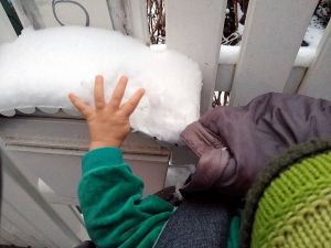 This morning when we got up, there was snow everywhere. The first snow of this winter, and it will probably already be gone tomorrow, because of rising temperatures. On the way to the post office Sammy got to touch snow for the very first time. Unfortunately I could not see his face to see his reaction. From the post office we went to the pharmacy, and then back home. Even though he only weighs 7.5 kilos, I could really feel it after a while, with my back starting to hurt. In any case, we both had fun. When he was getting a little cranky, I started hopping a little, and that made him laugh. What a sight that must have been, me hopping down the sidewalk!