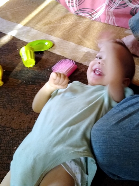 I was pretty tired today, first because of the restless night, then giving them the antibiotic, and the changing table being right next to our bed, I wake up when any of them do not like being changed. Sammy lies down to sleep after the 9 am breakfast, and an hour later it's Emmy's and Tammy's turn. As always, she struggled, fighting sleep, until she finally gave in and slept. She woke up first and I took her to the others, and then was right there when Emmy woke up.