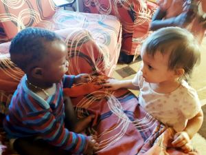 Today Amaga was over, and it was really cute how Tammy interacted with him. He's exactly a year younger than them, while Esther, his sister, is two years older than the triplets. Today Esther got a new water bottle, and she was very unhappy when Emmy was playing with it. Cathérine (5) also came over, one of our cook's children. It was so obvious today how they are lacking social skills, a they don't really have toys to play with, and do not play with other children. Older kids just use younger kids to serve them, ordering them to do this and that, just like the parents do. It's really sad.