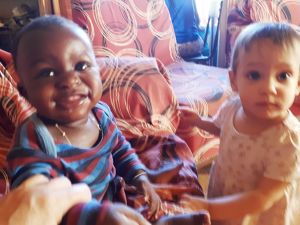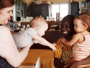 Today our Malian kids came over again, which was fun. They are gonna miss them too, both ways. Whenever someone comes through the door, it's Emmy who immediately stretches out his arms to be picked up by whoever it is. And then the girl comes as well. It's a great distraction when they are cranky, ending that immediately.