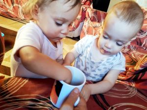 We had been there for a while, when we decided to also go through the bag check at that time rather than later. They check your passports and boarding passes, and then they go through every bag in detail. I've had a lot of trouble there before, but not this time. The guy (a man again!) was really nice, and had no issues with any liquids. We could even keep the "baby water"! They then wave the wand over you, and you're done. We took all our stuff and found some seats to sit back down. Thankfully I had bought a lot of baby snacks before this trip that were really useful even while in Mali, and definitely during the trip. The babies were curious about trying them, and I'm finding out what they like and don't like. Emmy again went up to some people around us, including the security lady watching that no one was entering or leaving the area. 0