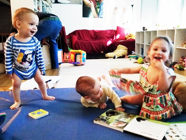 The boys having slept longer in the morning, they seemed fitter than usual. We still fed them their afternoon meal at 2:30, even though they had had lunch just 2 hours earlier, and so they didn't eat much. Then we put them to bed. Thankfully the girl didn't wake up, at least not right away. However, the boys never went to sleep, and after a while, I heard all three laughing and talking with each other. At least I'd had a few minutes of being able to work at the computer, while they were all in bed at the same time, which is so rare.